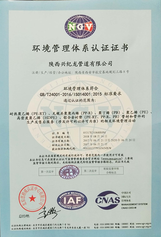 北京恩格威認(rèn)證中心有限公司于2018年7月5日、6日對(duì)陜西興紀(jì)龍管道有限公司進(jìn)行了為期二天的體系認(rèn)證審查,通過(guò)審查對(duì)我公司的各項(xiàng)管理工作給予了肯定,并順利通過(guò),目前三證已正式換發(fā)。