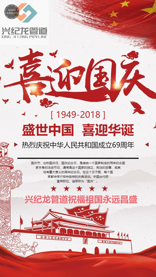 興紀(jì)龍管道|慶祝中華人民共和國(guó)成立69周年!