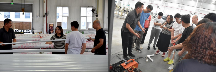 在蘇副總、何總及設計總監(jiān)付曉娟的帶領下,一起從產品原料--擠出--復合--包裝--連接等方面進行了全方位的講解和現(xiàn)場實驗,讓各位zhuan家能夠實際的去感受科技的力量,更直接的能體會到陜西興紀龍管道股份有限公司在產品的生產、研發(fā)及品質管控等各個方面的認真、執(zhí)著及科學嚴謹的態(tài)度。