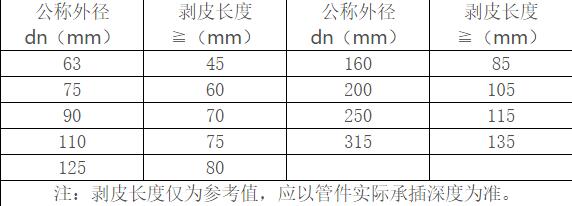 步驟二:徑向切割:用專用切割機切斷鋁合金襯塑復(fù)合管材,切面(斷面)應(yīng)平齊垂直于管材軸線,電熔連接剝皮長度見表2