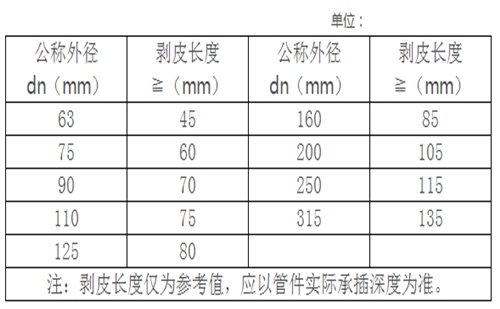 1、用專用切割機(jī)切斷鋁合金襯塑復(fù)合管材,切面(斷面)應(yīng)平齊垂直于管材軸線,電熔連接剝皮長(zhǎng)度見(jiàn)下表。