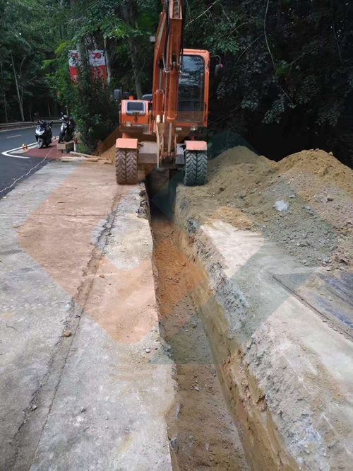 5、人工開挖管槽時,要求溝槽底部平整、密實,無尖銳物體。溝底可以有起伏,但必須平滑地支撐管材,若有超挖時,回填夯實。