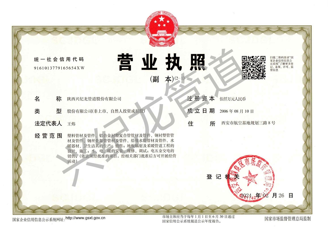 陜西興紀(jì)龍管道股份有限公司營(yíng)業(yè)執(zhí)照(三證一體)